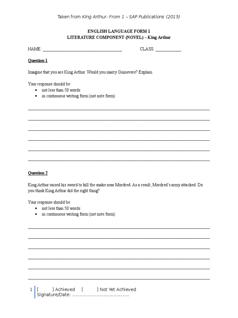 Form 1 Literature In English Novel Pdf Welsh Folklore King Arthur